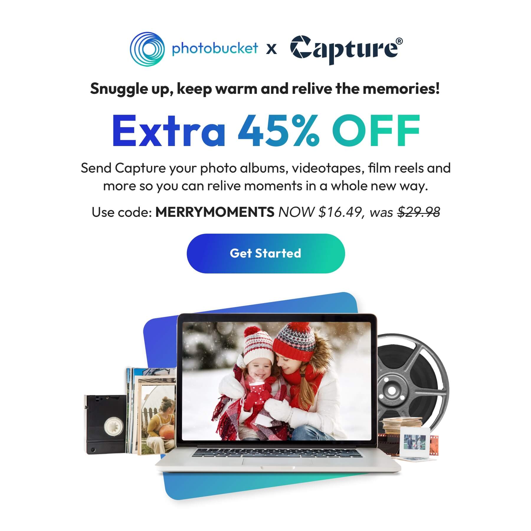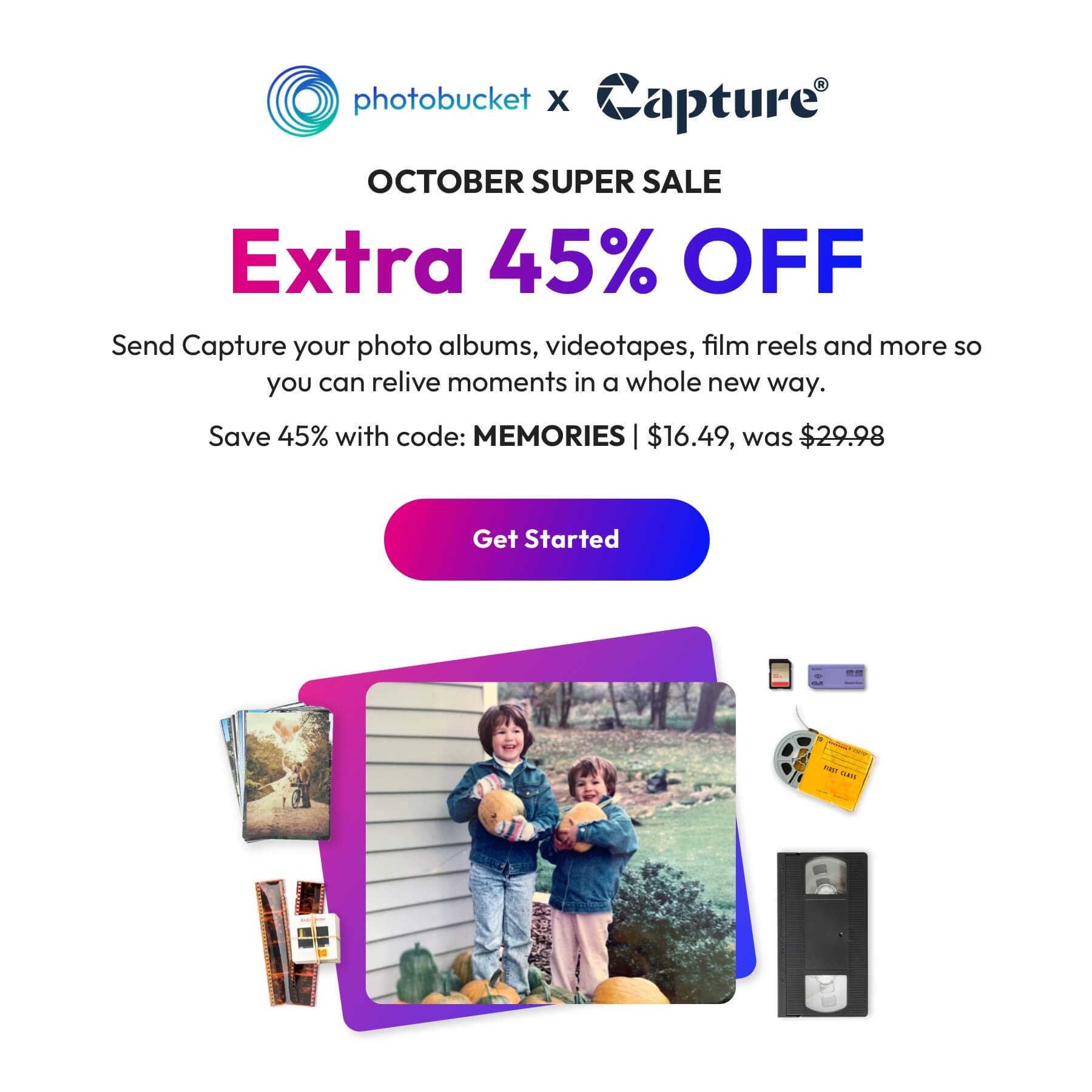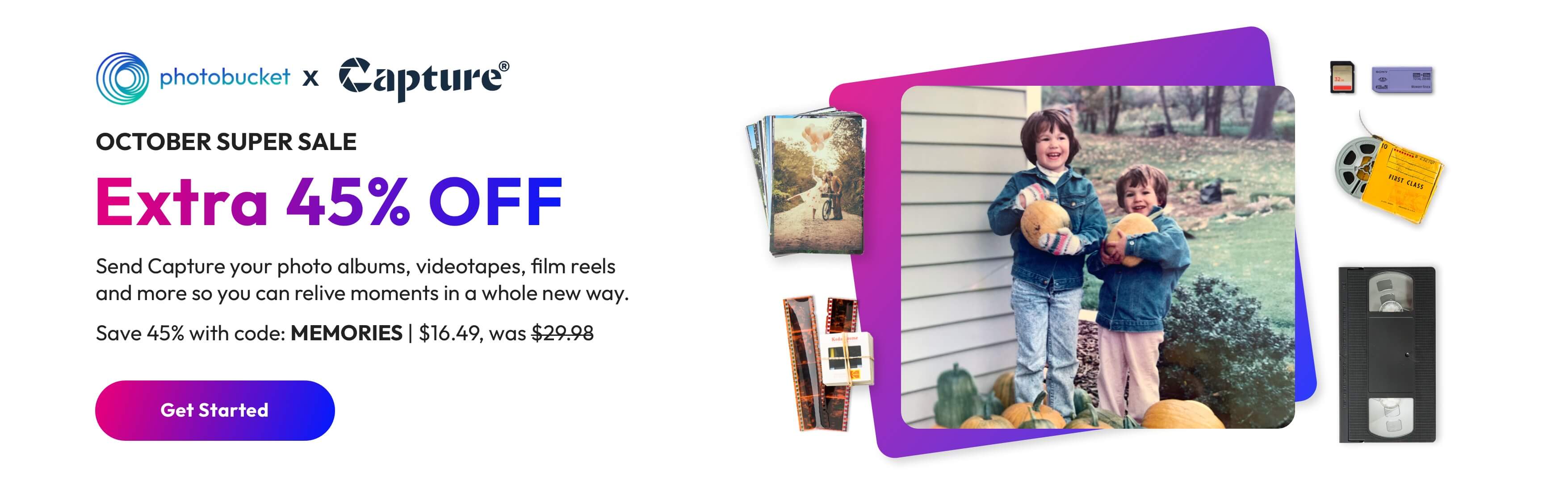 Your digital memories will be automatically uploaded to your Photobucket account, plus you will receive any output(s) you ordered and your original media.