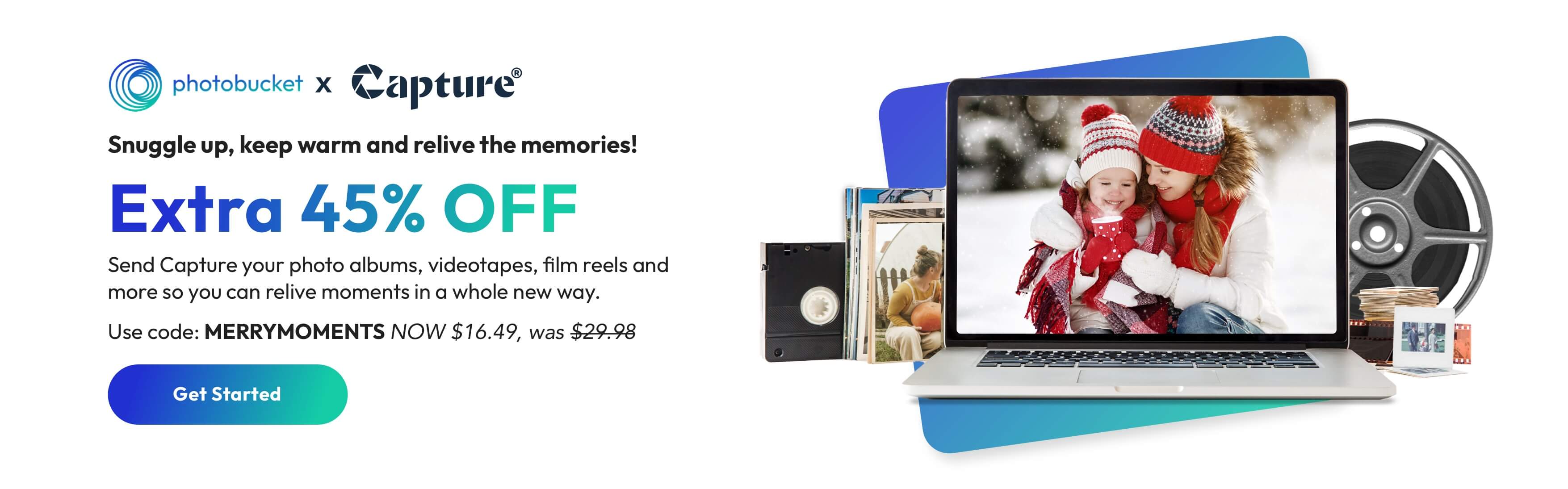 Preserve & share your favorite memories with hassle-free digital conversion of all your legacy media. All Home Video and Photo Transfers include digital download and the option to add USBs or DVDs. See What You Get >LIMITED TIME OFFER! Save 45% when you use code MERRYMOMENTS Starting at $16.49